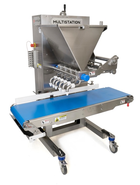 Portion and deposit batter and fillings with up to 60 cycles per minute.