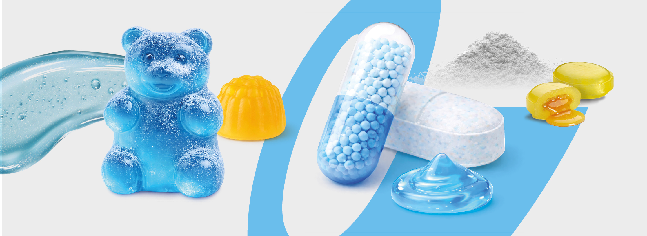 Pharmaceutical, cosmetics, and neutraceutical processing technologies such as: (Micro-) tablets, pellets, effervescent products, granules & powders, emulsions, creams, ointments, gummies, and medicinal confectionery